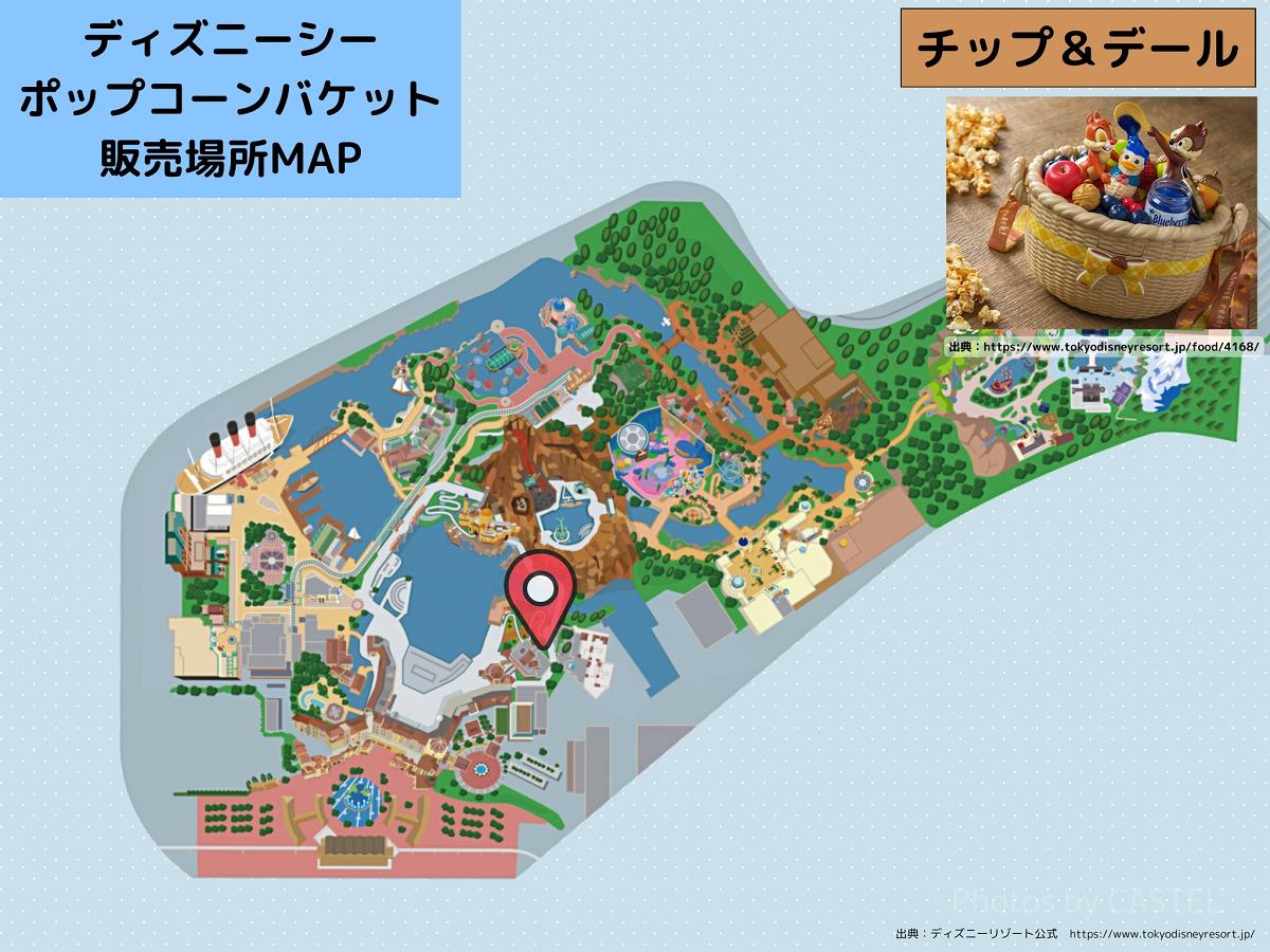 ディズニーシーのポップコーンバケット販売場所MAP:チップ&デール