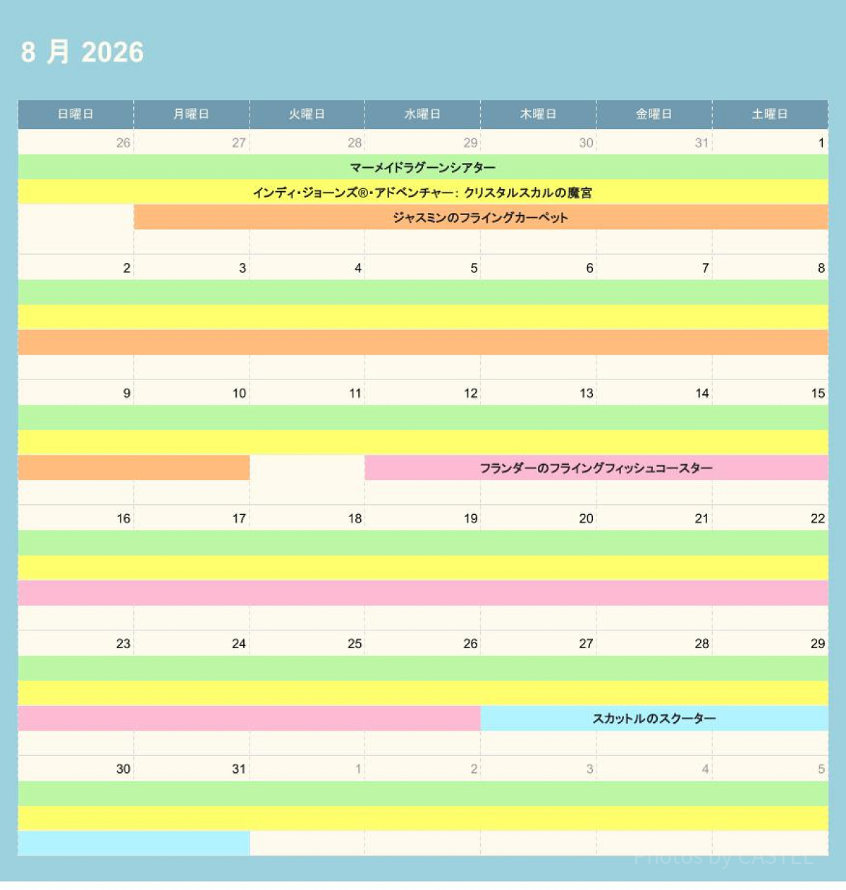 ディズニーシーの休止情報(2026年8月)