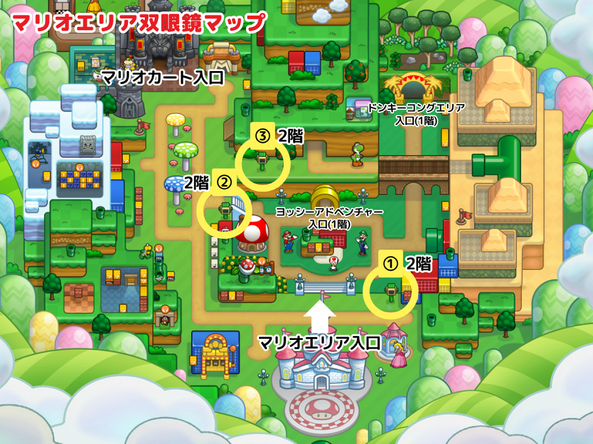 「マリオエリアの双眼鏡の場所マップ」が含まれているまとめ記事はコチラ
