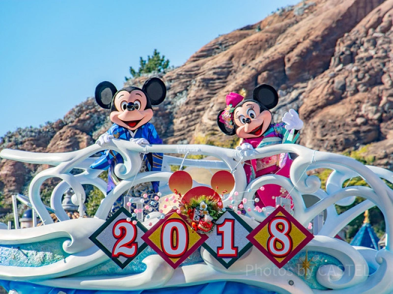 お正月のこの時期にしか見ることのできないレアなコスチュームと共にディズニーの仲間たちが新年をお祝いします。
