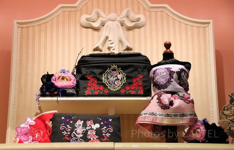 第一弾で販売になるグッズは、色とりどりの刺繍とさりげないドット柄の模様が可愛いバッグや、赤いバラの花をアクセントに散りばめたポーチなど、ミニーやデイジーの周りのデザインにもこだわりがあり、一つ一つの商品が個性的で遊び心に溢れています。