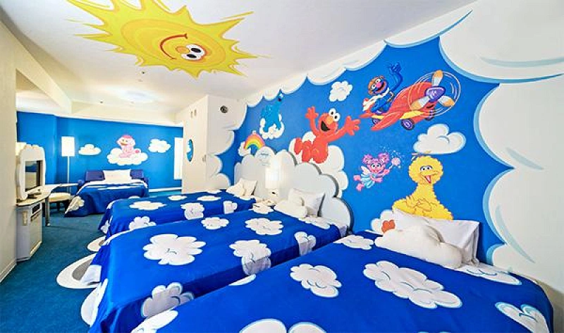 セサミストリートの仲間たちをコンセプトにしたかわいい客室がホテルなんです!