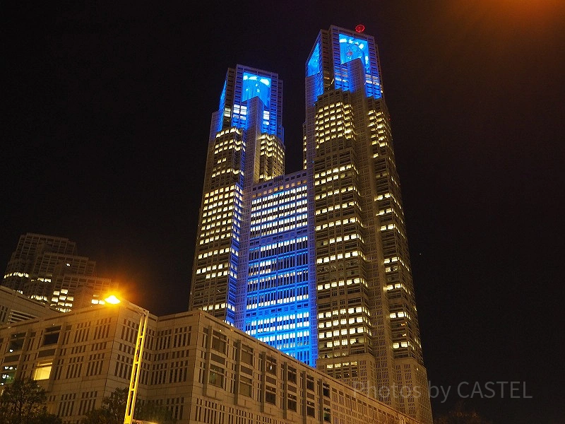 上を見ると、ライトアップされた綺麗な都庁が飛び込んできます!
