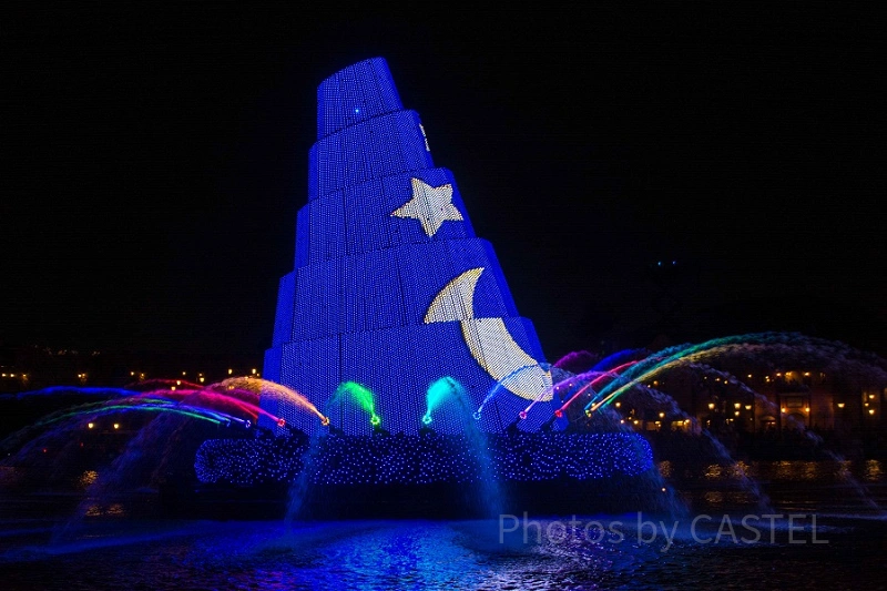 見所は約379リットルの水を使った水の壁に映し出されるディズニーの名作アニメの数々です。