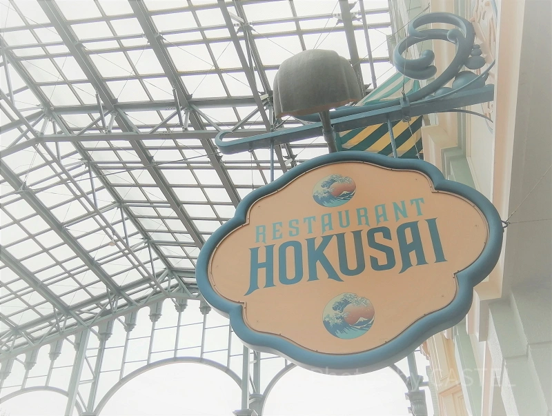 エントランスからシンデレラ城方面へ進むと、右手に”HOKUSAI”と書かれた看板が見えてきます。