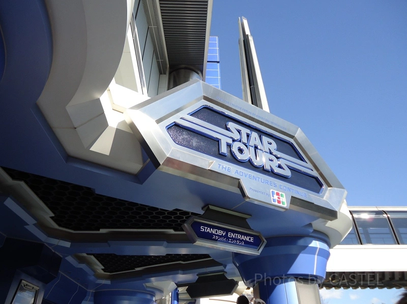 スター・ツアーズは、エントランス向かって右側のトゥモローランドのエントランスに近い側にあります。