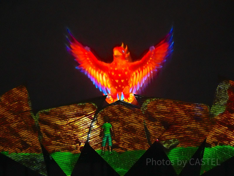 ③【ショー開始】水のスクリーンに巨大な不死鳥が!