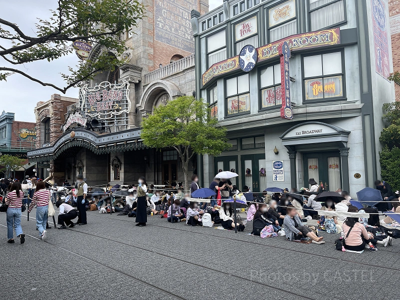ショーのスタンバイ列は、開場まで列が進むことはないので、場合によっては座って待つことも可能ですよ!